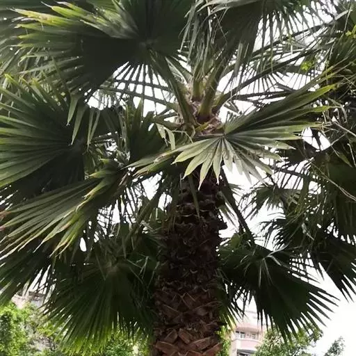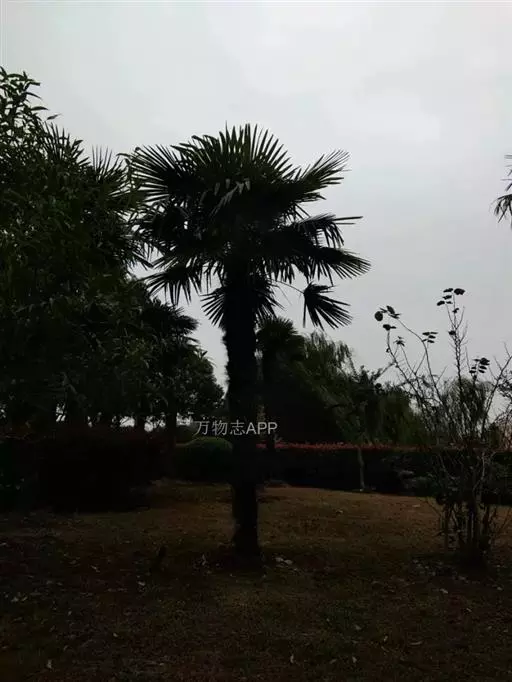 棕榈(学名:Trachycarpus fortunei (Hook.) H. Wendl.)属棕榈科常绿乔木,高可达7米;干圆柱形,叶片近圆形,叶柄两侧具细圆齿,花序粗壮,雌雄异株。花黄绿色,卵球形;果实阔肾形,有脐,成熟时由黄色变为淡蓝色,有白粉,种子胚乳角质。花期4月,果期12月