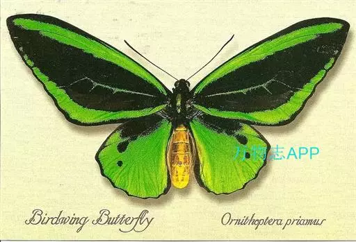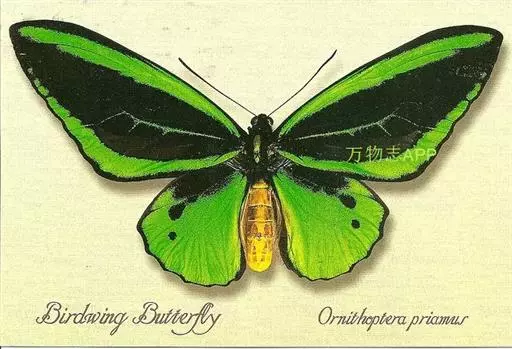 绿鸟翼凤蝶:又名东方之珠蝶,拉丁文学名:Ornithoptera priamus ( Linnaeus , 1758 ),凤蝶科鸟翼凤蝶属的一个物种。是印度尼西亚国蝶,也世界上非常珍稀的蝶类昆虫之一。为一种雌雄异体的昆虫。