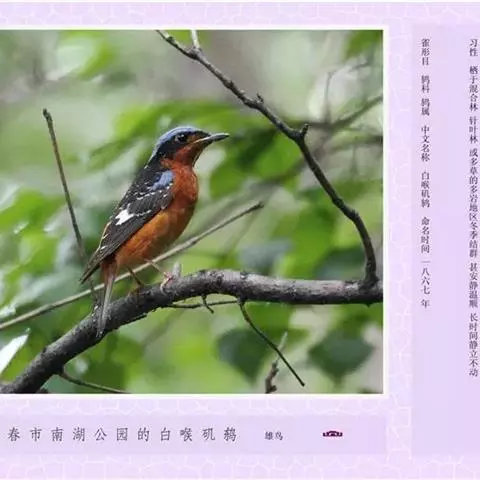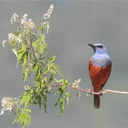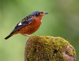 栗腹矶鸫(学名:Monticola rufiventris)是鸫科、矶鸫属小型鸟类,体长20-25厘米。雄鸟上体呈辉亮的钴蓝色,两翅黑褐色,喉蓝黑色,其余下体栗红色。雌鸟上体橄榄褐色,背具黑色鳞状斑,下体棕白色密杂以黑褐色横斑,黑白相衬,极为醒目,特征明显,野外不难识别。