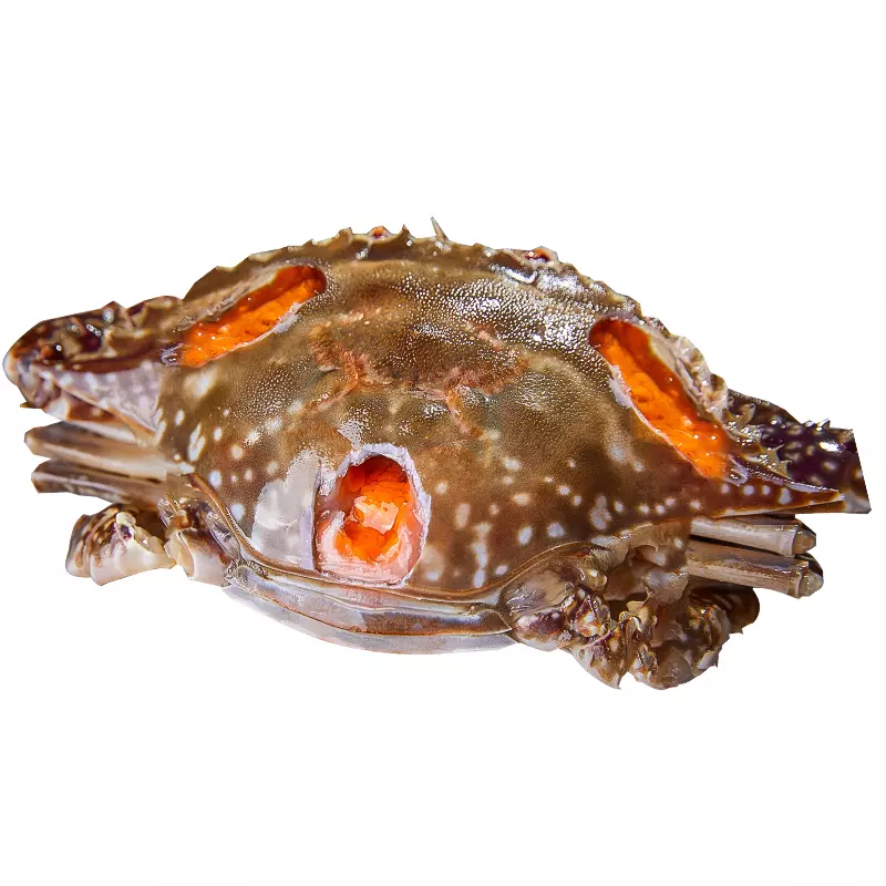 梭子蟹4 暖温性多年生大型蟹类动物,也是中国最大的一种蟹类。善于游泳,也会掘泥沙,常潜伏海底或河口附近,性凶猛好斗,繁殖力强,生长快。3月末蟹群游向浅水区产卵,怀卵蟹最大个体达750克,4月中、下旬为产卵盛期,从第一幼蟹期到成熟期,一般需3年。近岸产卵场雌蟹占80%以上,外海则雄蟹较多,主要渔期在4月份;据老渔民反映,越冬期间的气温或越冬场的水温高低对梭子蟹的渔获量有较大影响。谷雨前后蟹体最丰满,虽然秋季也可捕到,但不肥满(但越冬前雄蟹特别丰满肥大,有“谷茬公蟹”之说),雄蟹俗称“尖脐”,未成熟雄蟹称“查脐子”,雌蟹俗称“圆脐”,以雌蟹为好,怀卵大蟹又叫“石榴黄”,雌雄蟹市场价格相差悬殊。蟹肉色洁白,肉多,肉质细嫩,膏似凝脂,味道鲜美。尤其是两钳状螯足之肉,呈丝状而带甜味,蟹黄色艳味香,食之别有风味,因而久负盛名,居海鲜之首。如清代李贽所言,“蟹鲜而肥,甘而腻,白似玉而贵似金,已造色香味三者之极,更无一物可以上之”。梭子蟹每百克肉含蛋白质14克,脂肪2.6克及其他营养元素若干。一般食用方法是清蒸,将其肉蘸以姜末醋汁,佐以醇酒,别有风味。唐代大诗人白居易在《奉和汴州令狐令公二十二韵》赋诗“陆珍熊掌烂,海味蟹螯咸”,将海蟹螯足与熊掌合提并论。除鲜食外,还可晒成蟹米,研磨蟹酱,腌制全蟹(卤螃蟹),制成罐头等。蟹壳可做甲壳素原料,经济效益非常可观。