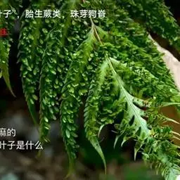 胎生狗脊蕨 水龙骨目乌毛蕨科狗脊蕨属的1种。中等大的林下蕨类,广布于长江以南各省区。其根状茎粗短而直立,密被红棕色的披针形大鳞片。叶簇生,叶柄向上到叶轴被同样而较小的鳞片;叶片二回羽裂,羽片披针形,羽状半裂;裂片三角形,基部的缩小成圆耳片。叶脉网状,在主脉两侧各形成1~2行网眼,网眼内无内藏小脉。孢子囊群生在相对于主脉的网脉上,囊群盖长圆形,向主脉开口。药用狗脊是属于蚌壳蕨科的金毛狗蕨的根状茎,其叶高达数米,三回羽裂,根状茎连同叶柄密被蓬松的,金黄色的宿存长茸毛,有如金毛狗头,其孢子囊群盖两瓣如蚌壳形。狗脊入药能补肝肾,强腰膝,除风湿。