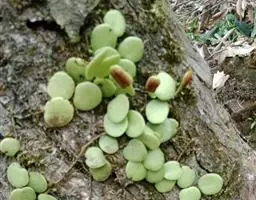 胎生狗脊蕨 哺乳动物能胎生产仔,植物呢?也能!请看这幅胎生狗脊蕨的图像,叶片上布满了带小叶片的芽孢,每一芽孢落后可长出一棵新的植株。实际上这里所谓的胎生是指以芽孢进行无性繁殖,这种现象在植物界不乏其例,如卷丹、山药和景天科许多植物都有类似于芽胞的无性繁殖的能力。 自然界中绝大多数植物的繁殖都必须经过种子发芽、幼苗、开花、结果这样一个过程。但是也有一些植物,种子成熟后并不离开母体,而是像哺乳动物的胎儿那样在母体中发育,直接在母体的果实中萌发植株,直到长成幼苗后才离开母体,人们形象地把它们称为“胎生”植物。我国华南亚热带地区的丘陵山坡上,生长着许多观赏植物——狗脊蕨,它的形态与普通狗脊蕨相似,不同的是,它直接在叶片上萌发幼株。可见,它也属“胎生”植物。胎生狗脊蕨为羽状复叶,每小叶间都会萌生一棵或几棵小植株,并能正常成长。这些小幼株排列有序,直到叶片枯萎脱落才落地生根,独立成长。
