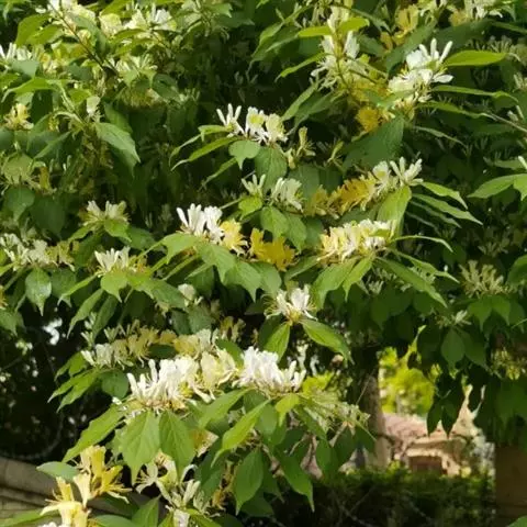 山银花在华南地区野外山林生长。木质藤本,长2~5m。树皮黄褐色渐次变为白色,嫩时有短柔毛。叶对生,…