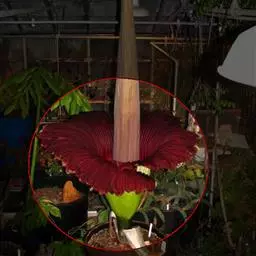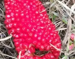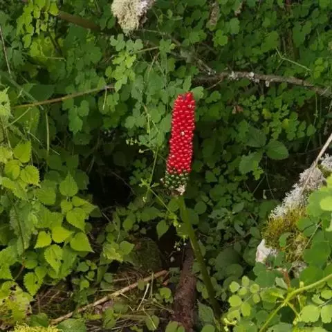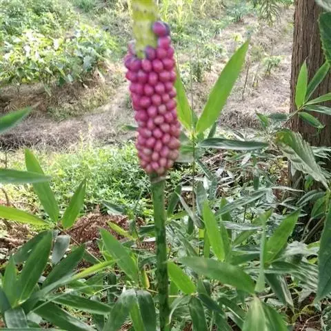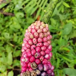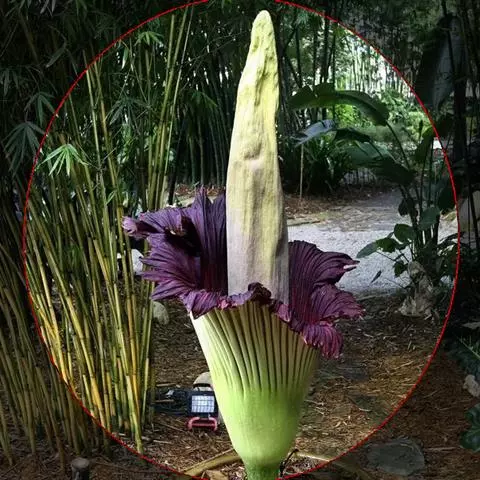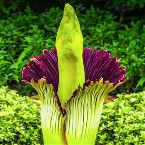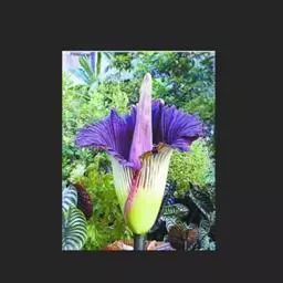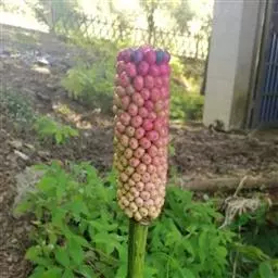 株高约40~70公分,地下有球茎,一株只长一叶,羽状复叶,叶柄粗长似茎,开花紫红色,有异臭味,地下球茎圆形。