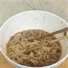 香油作坊的芝麻酱与市售的芝麻酱一样,拌面使用之前需要有个“澥”的工序,即将其稀释,准备好一杯温开水,往芝麻酱的碗中一点点地添加温开水,顺着同一方向搅拌;