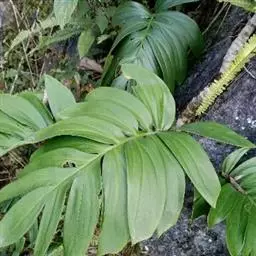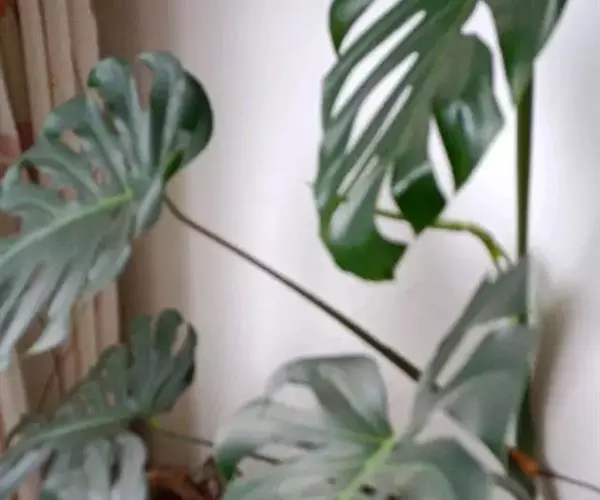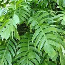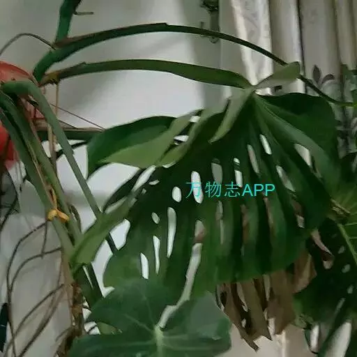 龟背竹叶形奇特,孔裂纹状,极像龟背。茎节粗壮又似罗汉竹,深褐色气生根,纵横交差,形如电线。其叶常年碧绿,茎粗壮,节上有较大的新月形叶痕,生有索状肉质气生根,极为耐阴,是室内大型盆栽观叶植物。