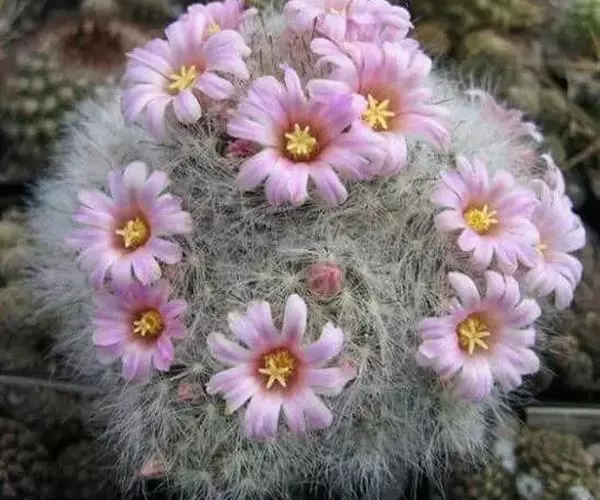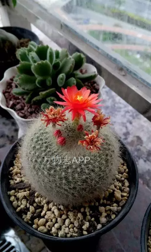 2、短毛丸:植株球形或筒状,开花之后花朵很大,花朵颜色为白色;