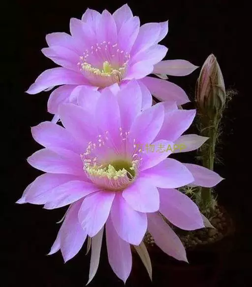 花大形,侧生,着生于刺丛中,粉红色,夜间开放,长喇叭状,长15~20cm,花筒外被鳞片,鳞片腋部具长绵毛。浆果球形或卵形,无刺。种子细小,多数。花期5~6月。