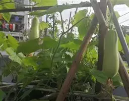 挟藤。当第2~3朵雌花出现,为使瓜坐得住、长得大,可采用挟藤。在离地面一指高处,用两根7厘米左右的木条挟藤,使藤变扁,保证维管束不断,达到伤皮肉不伤筋骨的效果。