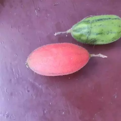 佩普基诺是一种迷你西瓜,来自南美洲的一种野生植物。形状类似于红薯,但“佩普基诺”只有3厘米长、直径2厘米。虽然外表与普通西瓜无异,但“佩普基诺”内瓤为青绿色,根部为茎状。口感如黄瓜般清脆爽口,营养价值比普通西瓜高,可直接食用。“佩普基诺”有两种颜色和形状,一种是淡绿色带花纹的,瓜果通常是椭圆形;另一种是深绿和黄色相间的,瓜果一般是圆形。