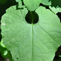 一年生蔓生藤本;茎、枝粗壮,具明显的棱沟,被长而密的白 色或淡黄褐色长柔毛。卷须较粗壮,具短柔毛,2歧,叶柄粗,长3-12厘米,粗0.2-0.4厘米,具不明显的沟纹,密被柔毛;叶片纸质,轮廓三角状卵形,带白绿色,长8-20厘米,宽5-15厘米,两面具短硬毛,脉上和背面较多,3深裂,中裂片较长,倒卵形、长圆状披针形或披针形,顶端急尖或渐尖,裂片又羽状或二重羽状浅裂或深裂,边缘波状或有疏齿,末次裂片通常有少数浅锯齿,先端钝圆,叶片基部心形,有时形成半圆形的弯缺,弯缺宽1-2厘米,深0.5-0.8厘米。