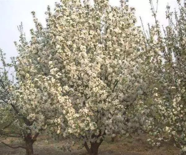 落叶小乔木,树高达7米,树冠开张,树干暗褐色。嫩枝或褐或红褐色,被短柔毛,以后逐渐脱落。叶卵圆或椭圆形,长5-10厘米,宽3-6厘米,先端急尖,基部宽楔形或近圆形,边缘细钝锯齿,叶正面深绿色,背面灰绿色,嫩叶两面均被短柔毛;叶柄长2-3.5厘米,被短柔毛。