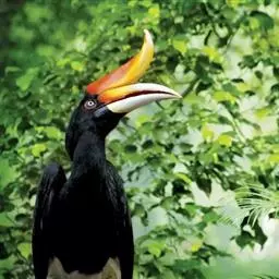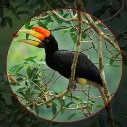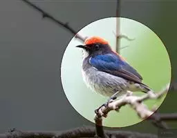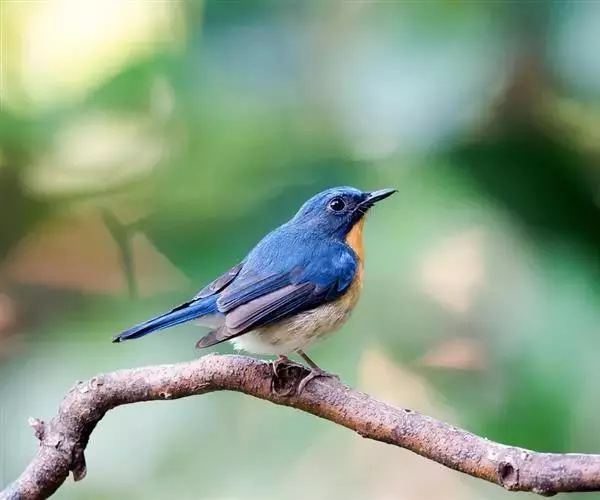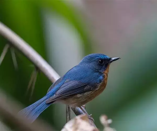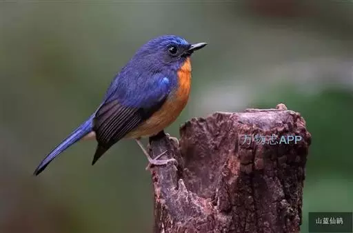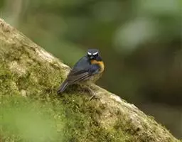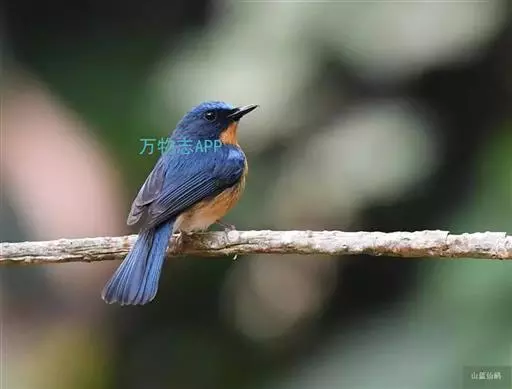 山蓝仙鹟(学名:Cyornis banyumas):小型鸟类,体长13-15厘米。雄鸟额基和眼先黑色,颏橙棕色,仅颏尖为蓝黑色,喉、胸、上腹和两胁亦为橙棕色,下体白色范围较小,仅局限于下腹和尾下覆羽。雌鸟上体少黄色,颏、喉、胸概为锈红色,喉无白色。