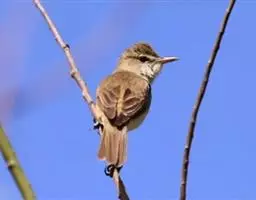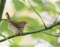 斑胸短翅莺:小型鸟类,体长11-13厘米。上体暗赭褐色,眉纹灰白;下体白色,下喉至上胸具灰褐点斑,…