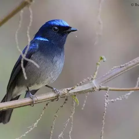 纯蓝仙鹟:体长16-17厘米,体重18-23克。是一种体型略大的浅蓝色或近褐色的鹟。雄鸟上体亮丽钴蓝,…