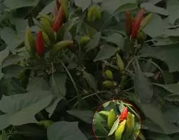 朝天椒茄科辣椒属一年或多年生草本植物;卵形;花通常单只生长于二分叉间,花梗直立,花稍俯垂,…
