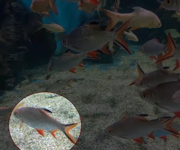 泰国鲫,Barbonymus schwanenfeldii (Bleeker, 1853) ,鲤科高体鲃属的一种鱼类。喜欢在水的中层游动,行动敏捷、具群游性 体型似普通的鲫鱼,幼鱼没有色彩,而成鱼则银鳞闪闪,背鳍和尾鳍的边缘有黑、红双线,非常美丽漂亮。此鱼为一种较易饲养的大型观赏鱼类,成鱼体长35厘米。雌雄区别:雄鱼色彩鲜明,较细长。雌鱼体幅较高,腹部隆起。