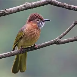 黄腹冠鹎:体长19-24厘米,是一种体型略大的褐色鹎。头顶橄榄褐色具黑褐色羽冠。白色的喉膨起,…