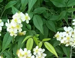 白蔷薇:直立灌木,高约2米;小枝有不等钩状皮刺,有时混有刺毛。小叶通常5,稀7,宽椭圆形或卵形,…