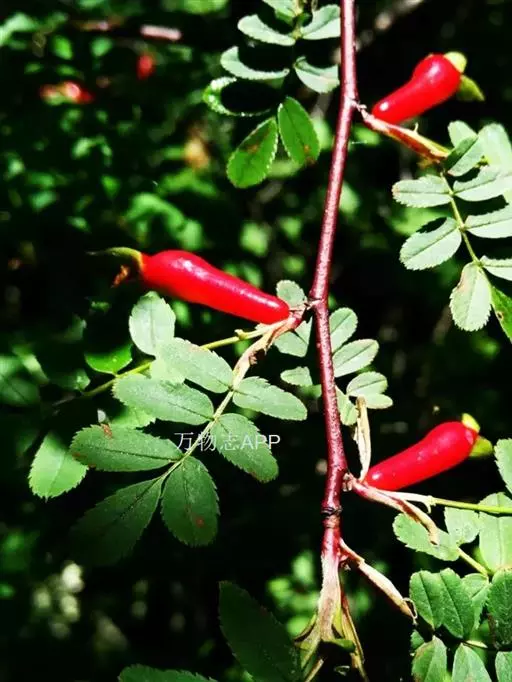 峨眉蔷薇,是蔷薇科蔷薇属直立灌木植物。峨眉蔷薇的小枝无刺或有扁而基部膨大皮刺;小叶长圆形或椭圆状长圆形,无毛;叶轴和叶柄有散生小皮刺,离生部分三角状卵形,边缘有齿或全缘;花单生叶腋,萼片披针形,全缘;花瓣白色,倒三角状卵形;蔷薇果倒卵圆形或梨形,熟时亮红色,果柄肥大,宿萼直立;花期为5-6月,果期为7-9月。峨眉蔷薇以产地命名。峨眉蔷薇产于中国多地,生于山坡、山脚下或灌丛中。峨眉蔷薇耐干旱,耐瘠薄,对土壤要求不严,在土层深厚、疏松、肥沃湿润且排水通畅的土壤中生长更好。峨眉蔷薇的繁殖方式为播种、扦插、压条。峨眉蔷薇的果实成熟时味甜,可鲜食,也可酿酒,晒干磨粉掺入面粉可作食品,其果实中含有糖及维生素等。峨眉蔷薇的果实不仅可以食用,还可入药,有止血、止痢、涩精之效。除此之外,峨眉蓄薇根皮含鞣质,可提制烤胶。