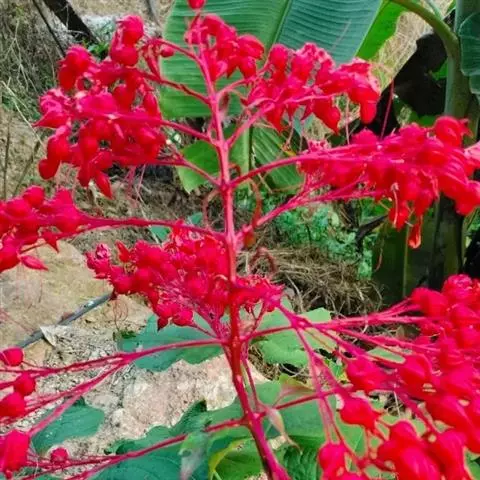 红萼龙吐珠马鞭草科大青属常绿木质藤本。叶对生,纸质,具柄,卵状椭圆形,全缘,先端渐尖,基部近圆形。…