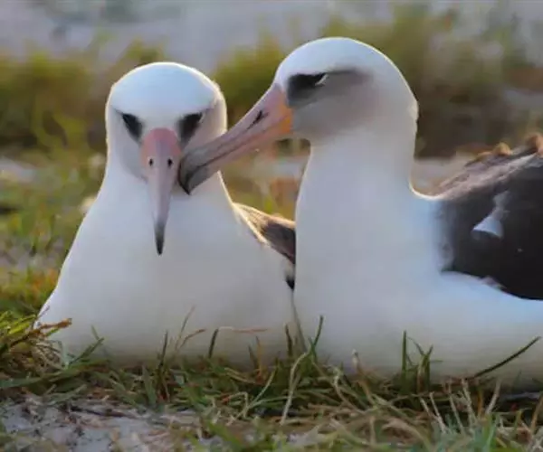 成年黑背信天翁通常会飞行数千英里为儿女寻找食物,常常会无意中带回塑料碎片。美国加州海员查尔斯·穆尔于1997年通过观察发现因洋流汇集的垃圾重达700万吨。垃圾清理任务异常艰难,因为垃圾不是集中在一块,相反, 它们是由数以十亿计的垃圾小岛组成,其中有许多是隐藏在水下。