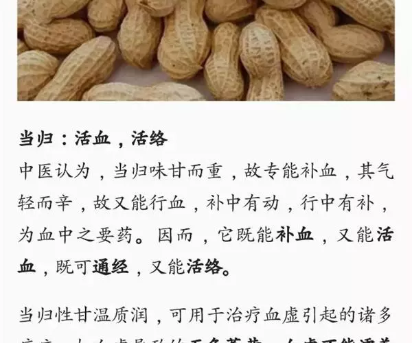 滋血通乳:花生果实中的脂肪油和蛋白质,对妇女产后乳汁不足者,有滋补气血,养血通乳作用。