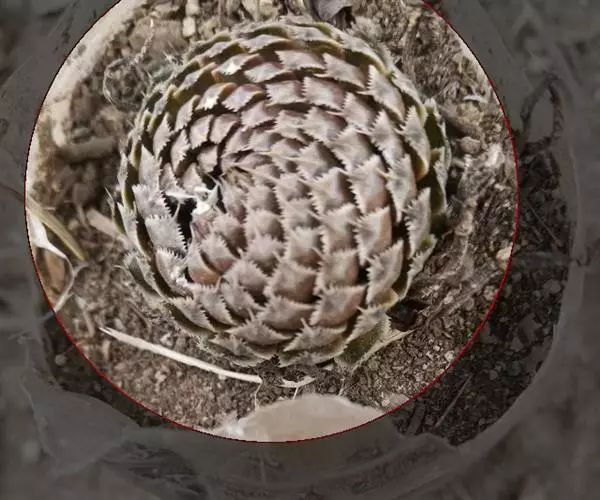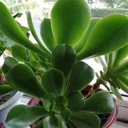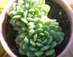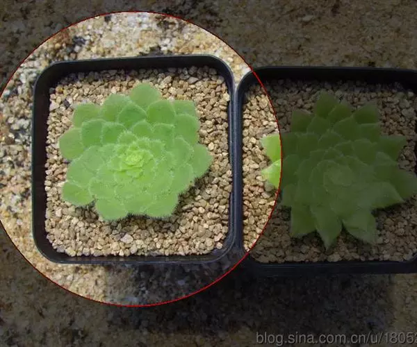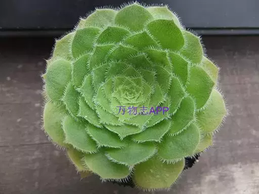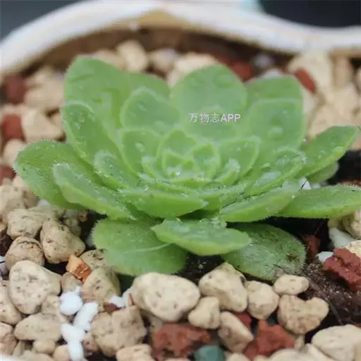 明镜为多年生肉质植物,植株低矮扁平,叶片草绿色,叶边缘生有白色绒毛,叶片无叶柄,呈匙形。 它的叶片比较薄,一点不厚实,叶片上有一层绒毛,叶片呈平板型排列,不会向上聚拢生长,只能不断增大直径。