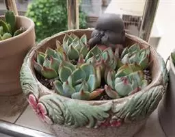 明镜株型奇特,其莲座状叶盘平齐如镜,上面还有精美的图案,非常美丽;明镜缀化扭曲多姿,特别是栽培多年的植株好似连绵起伏的山峰,甚为别致。宜作小型盆栽,点缀桌案、几架、窗台等处,精巧美观,效果独特。