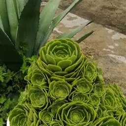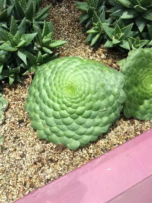 明镜(学名:Aeonium tabuliforme (Haw.) Webb & Berthel.)别名盘叶莲花掌,是景天科、莲花掌属植物,植株低矮,由100~200枚肉质叶组成莲座状叶盘,其最大直径可达50厘米。叶片无柄,匙形,叶色草绿至灰绿、深绿,叶缘有白色纤毛;叶片全部由中心水平向周围辐射生长,使整个叶盘平齐如镜,没有一丝空隙;由于叶缘颜色稍深并有白色纤毛,同时外轮叶大,内轮叶小,故镜面般的叶盘就像一幅精美绝伦的几何图案,非常奇特。