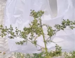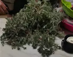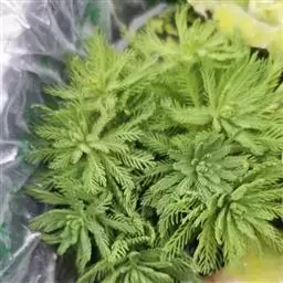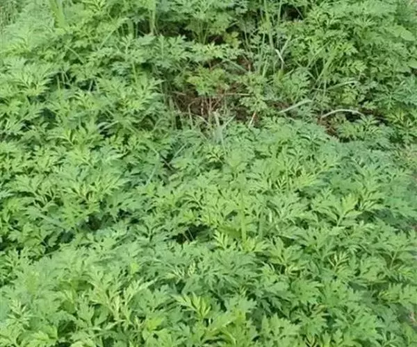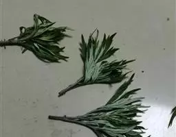 艾叶第1茬收获期为6月初,于晴天及时收割,割取地上带有叶片的茎枝,并进行茎叶分离,摊晒在太阳下晒干,或者低温烘干,打包存放。7月中上旬,选择晴好天气收获第2茬,下霜前后收取第3茬,并进行田间冬季管理。
