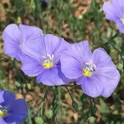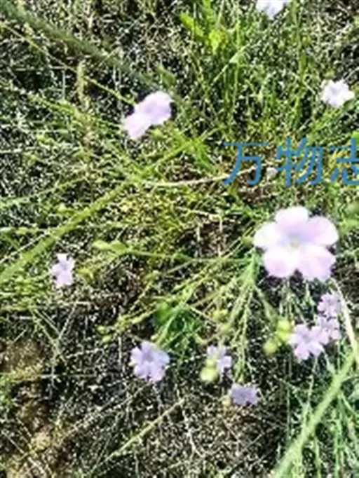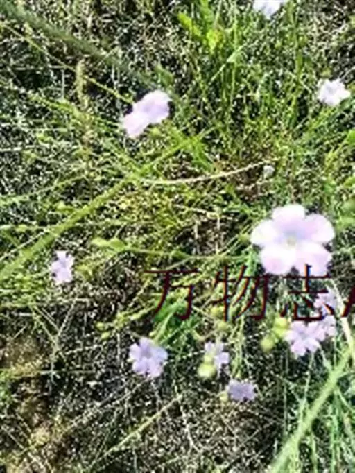 野亚麻,又名繁缕亚麻。一年生或二年生草本,高20-90厘米。茎直立,圆柱形,基部木质化,有凋落的叶痕点,不分枝或自中部以上多分枝,无毛。叶互生,线形、线状披针形或狭倒披针形,长1-4厘米,宽1-4毫米,顶部钝、锐尖或渐尖,基部渐狭,无柄,全缘,两面无毛,6脉3基出。单花或多花组成聚伞花序;花梗长3-15毫米,花直径约1厘米;萼片5,绿色,长椭圆形或阔卵形,长3-4毫米,顶部锐尖,基部有不明显的3脉,边缘稍为膜质并有易脱落的黑色头状带柄的腺点,宿存;花瓣5,倒卵形,长达9毫米,顶端啮蚀状,基部渐狭,淡红色、淡紫色或蓝紫色;雄蕊5枚,与花柱等长,基部合生,通常有退化雄蕊5枚;子房5室,有5棱;花柱5枚,中下部结合或分离,柱头头状,干后黑褐色。蒴果球形或扁球形,直径3-5毫米,有纵沟5条,室间开裂。种子长圆形,长2-2.5毫米。花期6-9月,果期8-10月。