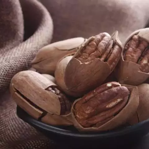 山核桃核仁松脆味甘,香气逼人,可榨油、炒食,也可作为制糖果及糕点的佐料。山核桃果仁中含有7.8-9.6%的蛋白质,人体必需的氨基酸占7种以上且含量高达25%以上,还含有22种人体所需的微量元素,其中钙、镁、磷、锌、铁含量十分丰富。据资料分析,每公斤核桃仁等于9公斤鲜牛奶或5公斤鸡蛋、2公斤牛肉的营养价值,而且它较牛奶、鸡蛋、牛肉的营养易为人体吸收。核仁还具有润肺补气、养血平喘、润燥化痰去虚寒诸功效。 [7-8] 1、核桃仁含有较多的蛋白质及人体营养必需的不饱和脂肪酸,这些成分皆为大脑组织细胞代谢的重要物质,能滋养脑细胞,增强脑功能。 2、核桃仁胡桃醌有防止动脉硬化,降低胆固醇的作用;此外,核桃还可用于治疗非胰岛素依赖型糖尿病;核桃对癌症患者还有镇痛,提升白细胞及保护肝脏等作用。