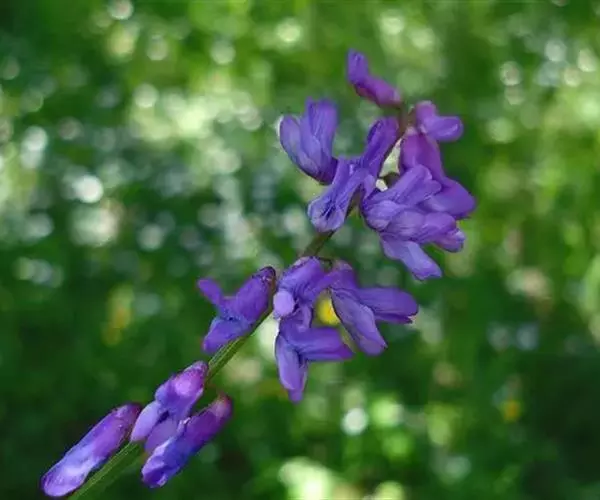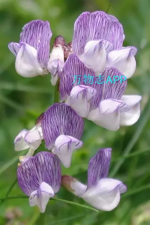 多年生攀援性草本,高60~120cm。茎细,具棱,稍有毛或无毛。偶数羽状复叶,托叶小,二深裂至基部,裂片线形,锐尖;小叶4~7对,叶轴末端具卷须;小叶椭圆形或卵形至长圆形或长卵形,长1~3.5cm,宽0.6~12cm,先端圆形或微凹,基部圆形,全缘,背面伏生细柔毛。总状花序腋生,与叶等长或稍长,花多数,花蓝紫色或紫色;萼钟状,萼齿三角形,短于萼筒;旗瓣倒卵形,先端微凹,翼瓣比旗瓣稍短,与龙骨瓣近等长。荚果近长圆形,长1.8~2.5cm,具1~4粒种子。花期6~8月,果期7~9月。