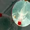 用小河虾作钓饵,先将头尾去掉,剥掉虾壳,把虾肉切成米饭粒大小的小段挂钩垂钓。