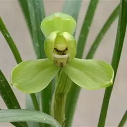 花茎直立,高20至30厘米,有花2至5朵,有时7朵, 花苞片比子房连梗长;花直径5至6厘米,浅黄绿色,常呈半透明状,有香味。萼片长圆形披针状, 春剑 中萼片直立稍向前倾,侧萼片左右斜向开展,花瓣较萼片为短,基部有三条紫红色条斑,唇瓣端钝、反卷。春剑叶姿挺拔苍健,秀气非凡,颇具风韵。