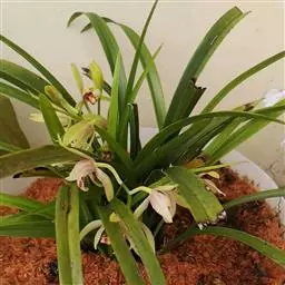 建兰素花,绿白色,清香,一枝开花5至12朵。叶色钢青,细而挺拔,有铮铮铁骨之相,所以叫铁骨素。在日…