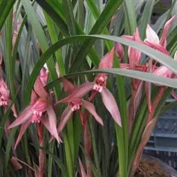 【春剑对水分的要求】:春剑性喜凉爽,盆土不宜过湿,开花时间和生长期适当多浇水,休眠期宜少浇水。春剑宜用深筒素烧瓦盆栽培。它的假鳞球茎集生成丛,为椭圆球形,它的根粗壮,假鳞茎和粗根都具有一定的保水 春剑 性,能应付短期6天左右的干旱。
