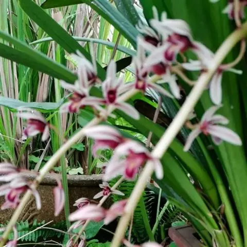 寒兰是兰科兰属的地生草本植物。茎为椭圆形;叶呈带状,尾部修长渐尖,叶脉较明显;每秆花枝开5-12朵,…