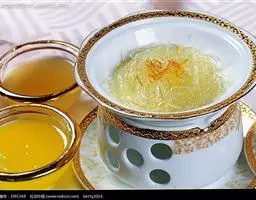 【原料】:桂元肉10克、银耳10克、玉竹15克、枸杞10克、莲籽5粒、大枣5粒、葡萄干10克、粳米30克。