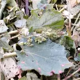 覆盆子的第二种病害叫白粉病。树莓感病叶覆有一层白色粉状物,从而引起叶片扭曲变形或变卷缩;有时叶片并不显现白色粉状物,而表现叶片有水浸状斑点。严重时新梢生长矮化,果实有时也受侵染。