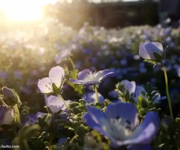 喜林草,Nemophila menziesii,是加利福尼亚一种通常野花。花色有红、黄、橙黄和蓝、白相间,亦有带紫色斑点者。