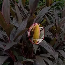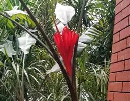 紫苞芭蕉形如一枝亭亭玉立、含苞待放的荷花,但却开在高高的芭蕉树上,这就是紫苞芭蕉。