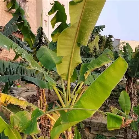 香蕉’),芭蕉科芭蕉属多年生草本植物,植株丛生,有匐匍茎;假茎浓绿有黑色斑点;叶片长圆形,…
