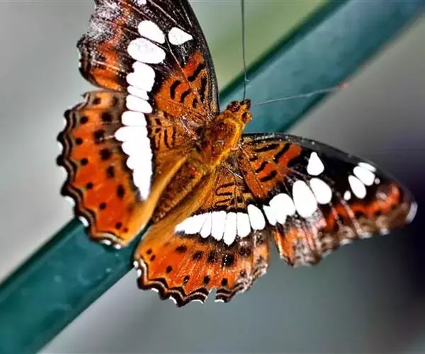 蛱蝶科成虫体型多中至大型,少数种类为小型。复眼裸出;下唇须粗壮。触角较长,端部锤状或棍棒状明显。