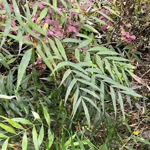 灌木,高0.5-2(-4)米。叶倒卵形至倒卵状披针形,长10-28厘米,宽8-18厘米,具2-5对小叶,最下一对小叶外形与往上小叶相似,距叶柄基部2-9厘米,上面暗绿至深绿色,叶脉不显,背面淡黄色,偶稍苍白色,叶脉隆起,叶轴粗1-2毫米,节间1.5-4厘米,往上渐短;小叶无柄或近无柄,狭披针形至狭椭圆形,长4.5-14厘米,宽0.9-2.5厘米,基部楔形,边缘每边具5-10刺齿,先端急尖或渐尖。