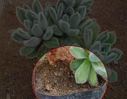 此外还可用老株旁边萌发的幼株进行扦插。扦插前需将切口晾干,再将下端茎干浅埋入沙土中。其余注意事项同叶插。