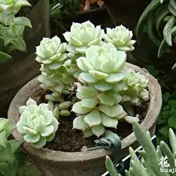 吉娃莲,景天科拟石莲花属,别名:吉娃娃,吉娃莲,植株小型,无茎的莲座叶盘非常紧凑。卵形叶较厚,带小尖,…