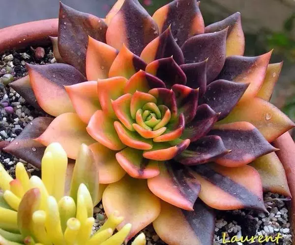 黑王子形似黑色的莲花,形态独特,叶色美丽,花色鲜艳,给人以高贵之感,是一种花叶俱佳的多肉植物,非常适合家庭栽培观赏。