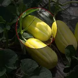 甜瓜(Cucumis melo L.)又称香瓜、哈密瓜等。是葫芦科一年生蔓性草本植物。茎、枝有棱。卷须纤细,单一,被微柔毛。叶柄长具槽沟及短刚毛;叶片厚纸质,上面粗糙,被白色糙硬毛。花单性,雌雄同株。雄花:数朵簇生于叶腋;花梗纤细;花冠黄色;雌花:单生,花梗粗糙,被柔毛;子房长椭圆形。果实的形状、颜色因品种而异,通常为球形或长椭圆形,果皮平滑,有纵沟纹,或斑纹,果肉白色、黄色或绿色,有香甜味;种子污白色或黄白色,卵形或长圆形,先端尖,表面光滑。花果期夏季。